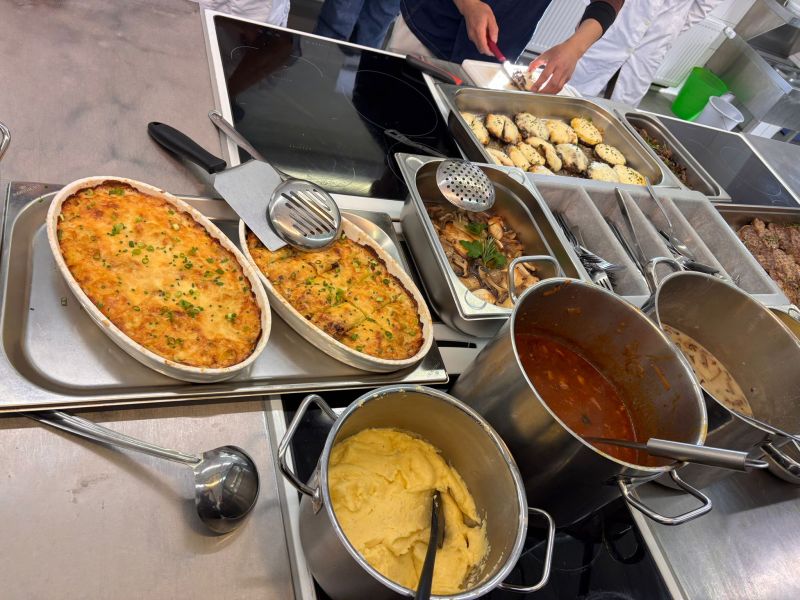 Es wurden u.a. Kaespressknödel, Salat mit Joghurt-Senf-Dressing, Thunfischsalat mit grüner Gurke und Zitronenmayonnaise, Spinatknödel auf Rahmpilzen und Parmesan, gefüllte Reisbällchen auf Kräuterdip, Hähnchenspieße mit Teriyakimarinade auf Bulgursalat, Marillenknödel auf Vanillesauce und Kaiserschmarrn auf Apfelragout serviert.